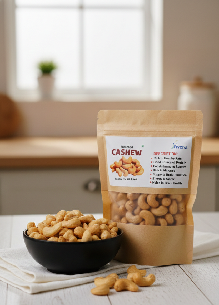 Spice-coated cashews, dry-roasted for bold flavour without oil.