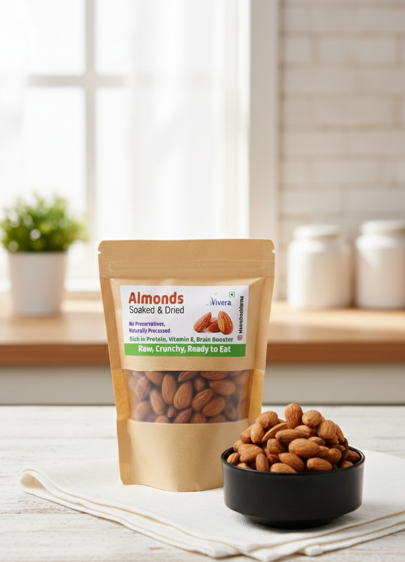 Gentle-soaked and sun-dried almonds for better digestion and nutrient absorption.