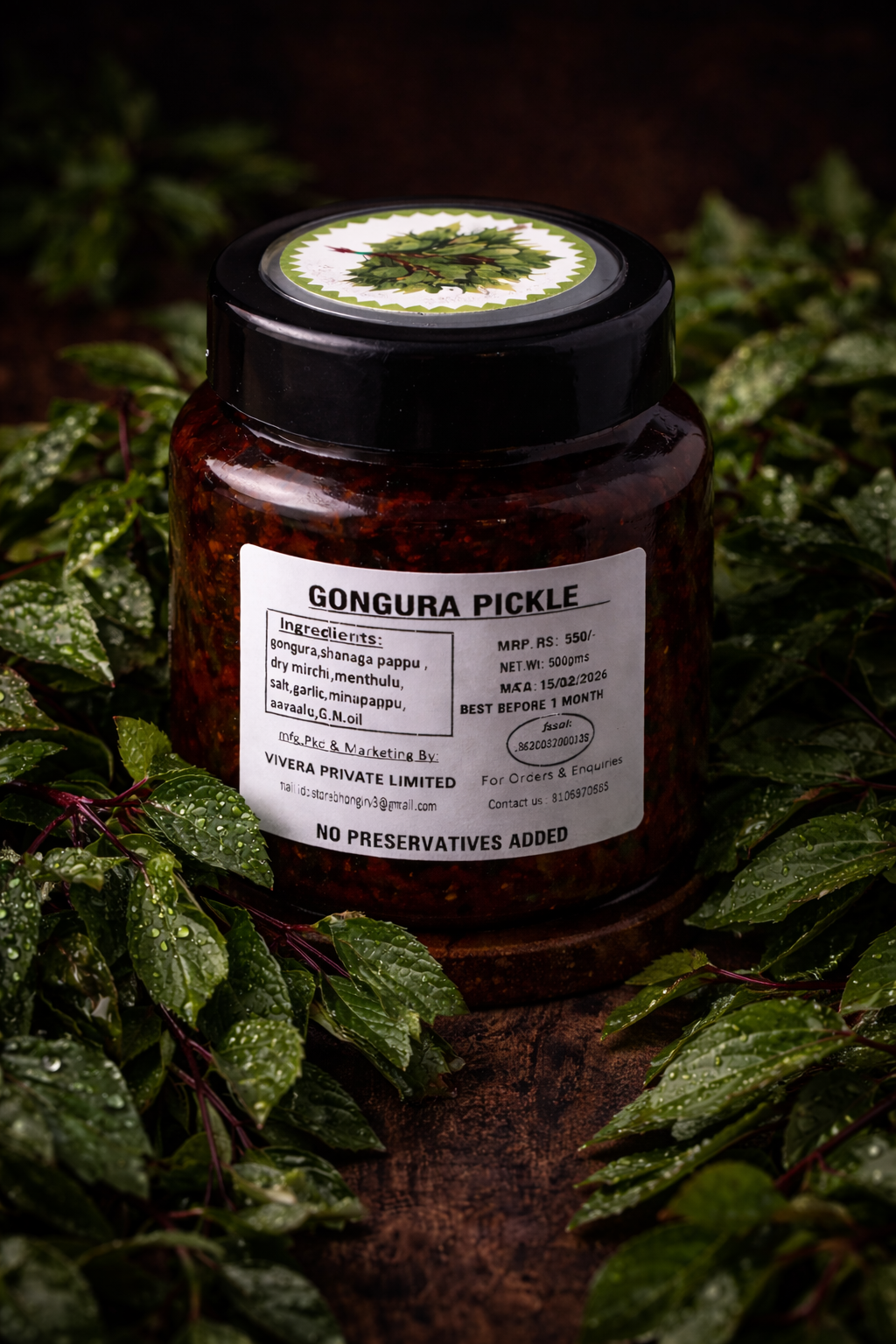 Classic gongura pickle made from fresh sorrel leaves and spices.