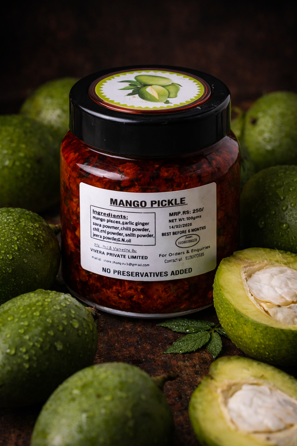 Traditional mango pickle made from raw mangoes and spice mix.