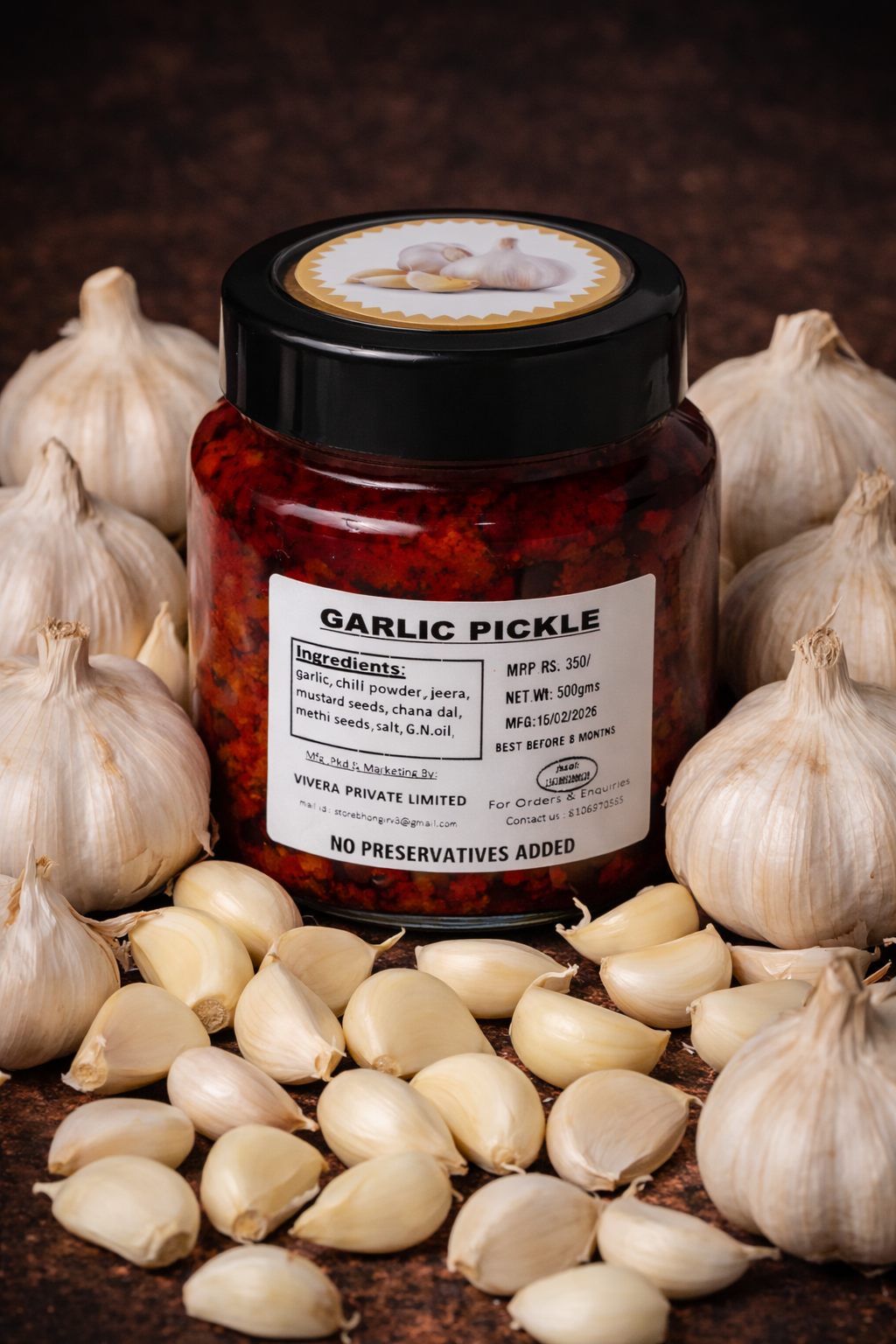 Rich, flavour-packed garlic pickle with slow-marinated cloves.
