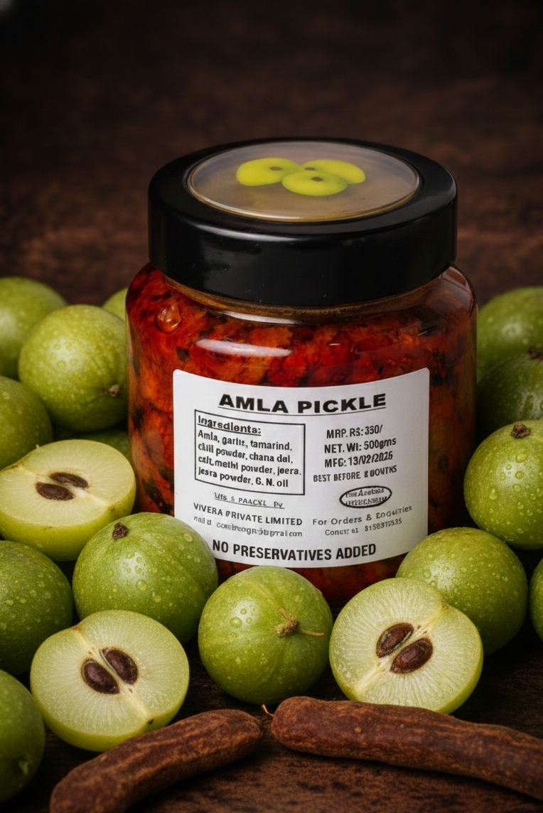 Sour and spiced amla pickle made with fresh Indian gooseberries.